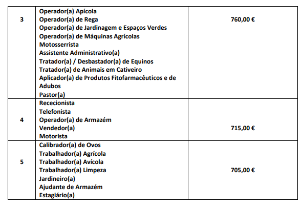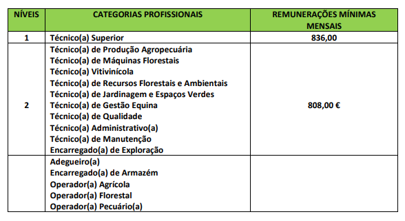 Segundo o comunicado, o texto assinado pelas duas partes irá ser remetido para publicação no Boletim de Trabalho e Emprego e «os valores salariais acordados têm aplicação a partir de 1 de Março de 2022». Abaixo encontra as tabelas salariais – de remunerações mensais, horárias e diárias – actualizadas aplicáveis ao sector agrícola em 2022.