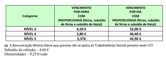 O nível 5 corresponde ao salário mínimo instituído para Portugal em 2022, que é de 705,00 euros (€). O subsídio de refeição foi actualizado para 4,60 €/dia e as diuturnidades mantêm-se em 9,25€/cada.