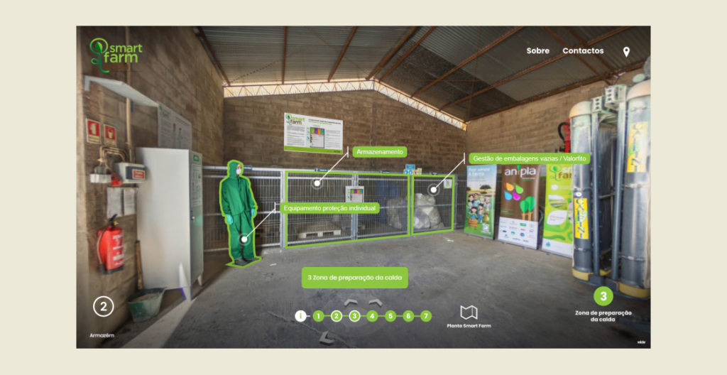 «Recorrendo a uma técnica designada por navegação interactiva, com adaptações de realidade aumentada, será possível conhecer com mais pormenor os projectos de promoção e preservação da biodiversidade desenvolvidos na Smart Farm, procedimentos associados à gestão e uso de produtos fitofarmacêuticos, principais cuidados na gestão de embalagens, processos de pulverização, gestão de efluentes e tudo o que está relacionado com práticas agrícolas, inovação, agricultura de precisão, aplicações e gestão de recursos», explica a entidade. Através da tecnologia de navegação interactiva será possível «ministrar formações online e realizar visitas virtuais, permitindo aos utilizadores/visitantes realizar uma visita completa ou seleccionar as áreas de maior interesse», indica.