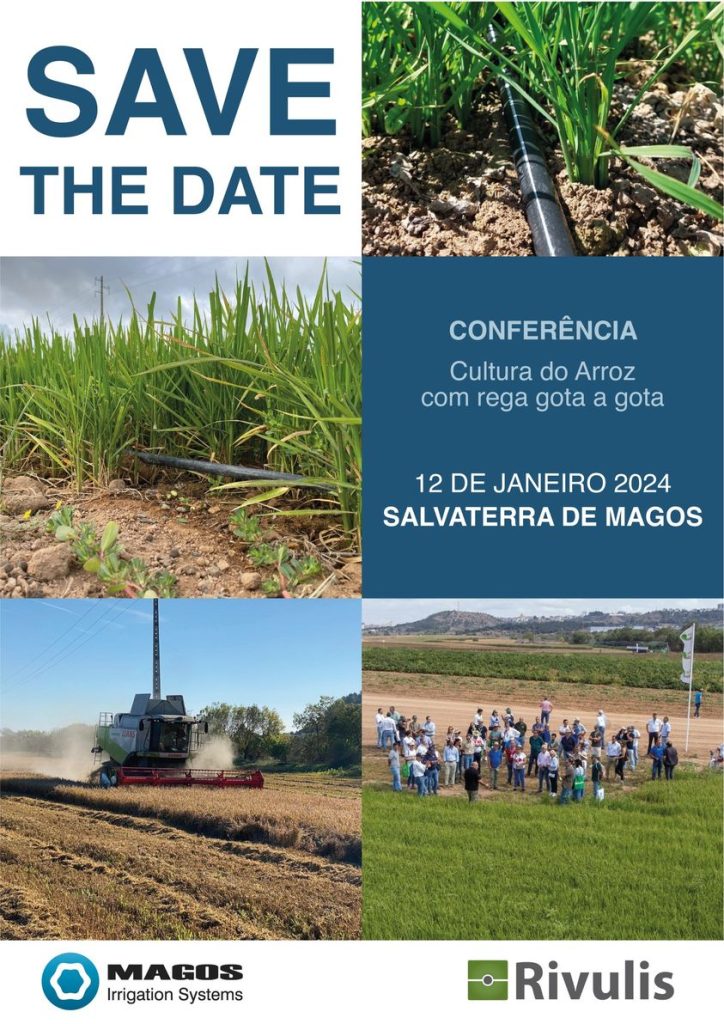 A 12 de Janeiro, em Salvaterra de Magos, terá lugar a apresentação dos resultados do ensaio de produção de arroz com rega gota-a-gota instalado no âmbito dos campos demonstrativos da Agroglobal, em Santarém. Este ensaio foi levado a cabo pela Magos Irrigation Systems, pela Rivulis e pela Terra Pro – que já tinham realizado um primeiro ensaio de produção de arroz com rega gota-a-gota, em 2022, em Pancas, no concelho de Benavente, que se saldou em «sucesso» e que teve continuidade em 2023) –, em parceria com a BASF e a ADP Fertilizantes, na sequência de um repto lançado pela organização da Agroglobal – evento que decorreu em Setembro último – para testar nos campos da feira novos métodos e técnicas de produção de arroz, com o intuito de tornar a cultura mais rentável e sustentável.
