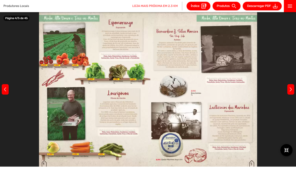 «Actualmente, são mais de 180 pequenos e médios produtores que integram a rede local da Auchan, fornecendo frutas, legumes, queijos, vinhos, mel, enchidos e outras especialidades regionais – e não só –, sempre num raio máximo de 50 km das lojas. Entre eles, há também empreendedores que reinventam a tradição, trazendo inovação a partir das raízes locais. É o caso da Carob World, que transformou a alfarroba em tabletes originais, ou da Salina Greens, que produz sal vegetal a partir de halófitas cultivadas em ambiente natural em Alcochete, entre muitos outros», refere a Auchan Retail Portugal. A empresa salienta também que, «ao privilegiar fornecedores locais, a Auchan promove cadeias curtas de abastecimento, reduz a pegada ambiental do transporte de mercadorias e contribui para a valorização da produção tradicional portuguesa».