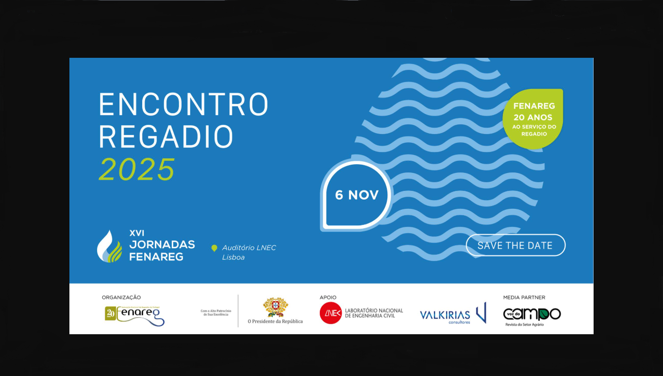 Decorre a 6 de Novembro, no Auditório do LNEC, em Lisboa, a 16.ª edição das Jornadas Fenareg | Encontro Regadio 2025, organizado pela Federação Nacional