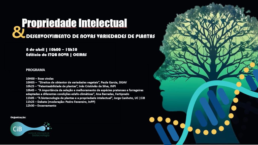 Com esta iniciativa, o CiB «pretende divulgar informação relacionada com os direitos de obtentor e as patentes em plantas». O evento conta assim com quatro intervenientes – Paula Garcia, subdirectora geral da Direcção Geral de Alimentação e Veterinária (DGAV); Inês Cristóvão da Silva, chefe do Departamento de Patentes e Modelos de Utilidade do Instituto Nacional de Propriedade Industrial (INPI); Ana Barradas, directora do Departamento de Investigação e Desenvolvimento da Fertiprado; Jorge Canhoto, investigador, professor da Universidade de Coimbra e presidente do CiB –, que «irão analisar e debater questões como as limitações da legislação actual e a proposta de regulamentação das Novas Técnicas Genómicas (de que forma esta afectará os direitos de obtentor e a obtenção de novas variedades de plantas)», explica a entidade.