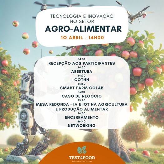 “Tecnologia e inovação no sector agroalimentar” é o tema de uma conferência que se realiza no dia 10 de Abril, a partir das 14h00. Este evento tem lugar no piso 1 do Mercado Municipal de Leiria e é organizado no âmbito do projecto “Test4Food – Test bed para aceleração da inovação digital no sector agroalimentar”, que conta com financiamento do Plano de Recuperação e Resiliência (PRR).