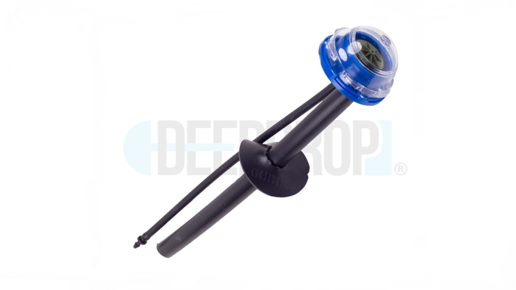 Este sistema de rega é composto por: tubo guia de 16 mm/18 mm, tubo de drenagem de 10mm, base circular flexível, cápsula DeepDrop transparente, base da cápsula, microtubo para rega, conector do microtubo e conta-gotas (opcional). «Dependendo do tipo de cultura, solo e qualidade da água, recomenda-se o uso de gotejadores de 2 l/h, 4 l/h ou 8 l/h», indica a empresa, acrescentando que o DeepDrop «é recomendado para pomares, árvores em geral, horticultura, vinha, arbustos, jardins e viveiros» e «não é recomendado para grandes culturas como cevada, trigo, milho ou arroz».