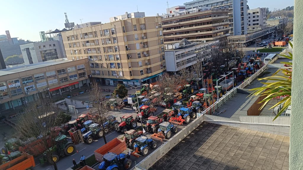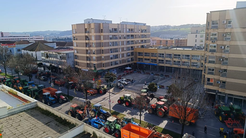 Na manhã do dia de hoje, 2 de Fevereiro, decorrem manifestações de agricultores em diferentes locais do país, nomeadamente com marchas lentas em Montijo/Alcochete (sobretudo na A33, com término marcado para as 12h00), em Vila Franca de Xira e na cidade de Coimbra (nas fotografias) e com bloqueios em Vila Verde de Ficalho (na estrada nacional 260, junto à fronteira), entre outros pontos. Estes protestos, organizados de forma espontânea e localizada e sem intervenção de confederações e sindicatos, seguem-se a manifestações que tiveram lugar ontem, 1 de Fevereiro, em diferentes zonas de Portugal, que terão sido organizadas na maioria pelo “Movimento Cívico de Agricultores”, tal como no dia de hoje.
