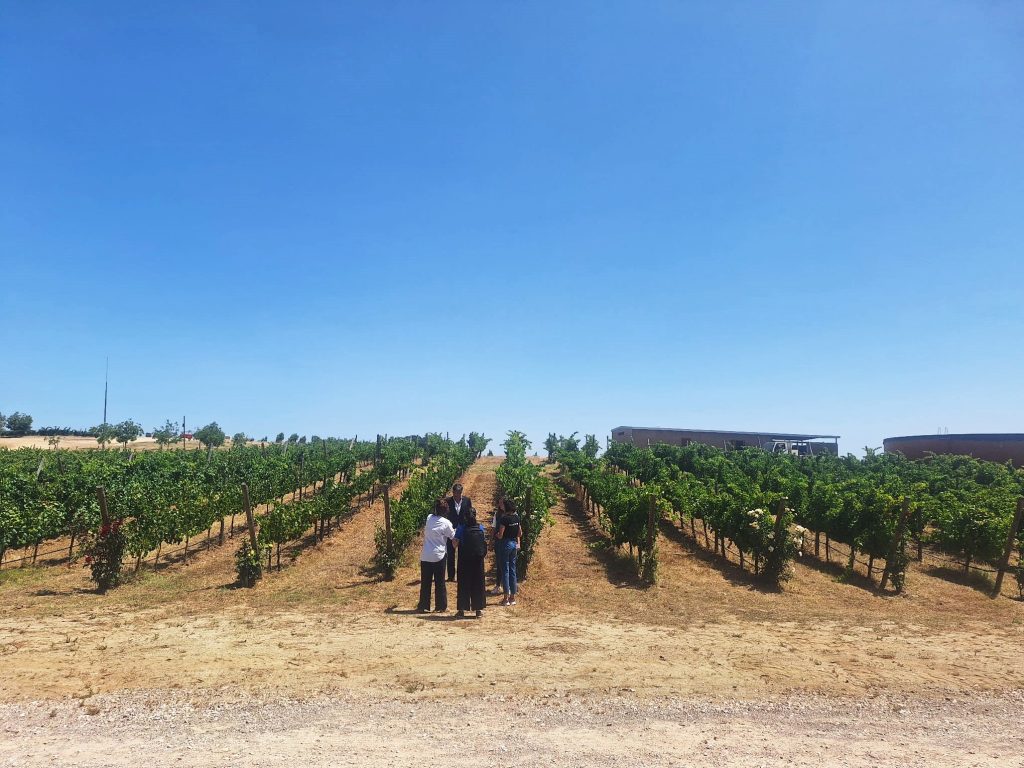 A ministra Margarida Balseiro Lopes, acompanhada por uma comitiva da Associação dos Jovens Agricultores de Portugal (AJAP), visitou a Mainova, marca portuguesa de vinhos e azeites, na Herdade da Fonte Santa, no Vimieiro, Arraiolos, Alentejo.