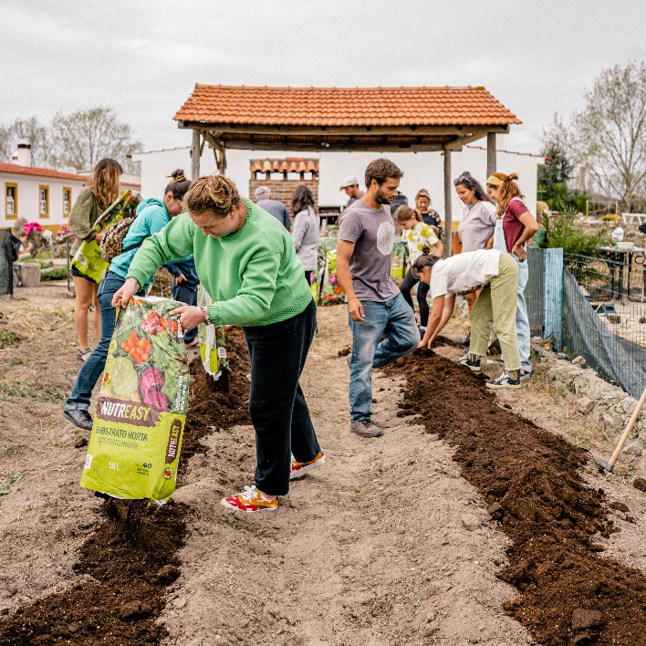 Na Nazaré juntaram-se vários participantes para montar uma horta orgânica com a ajuda das Hortas LX. Plantaram-se brócolos, alfaces, couves e todos os hortícolas da época.