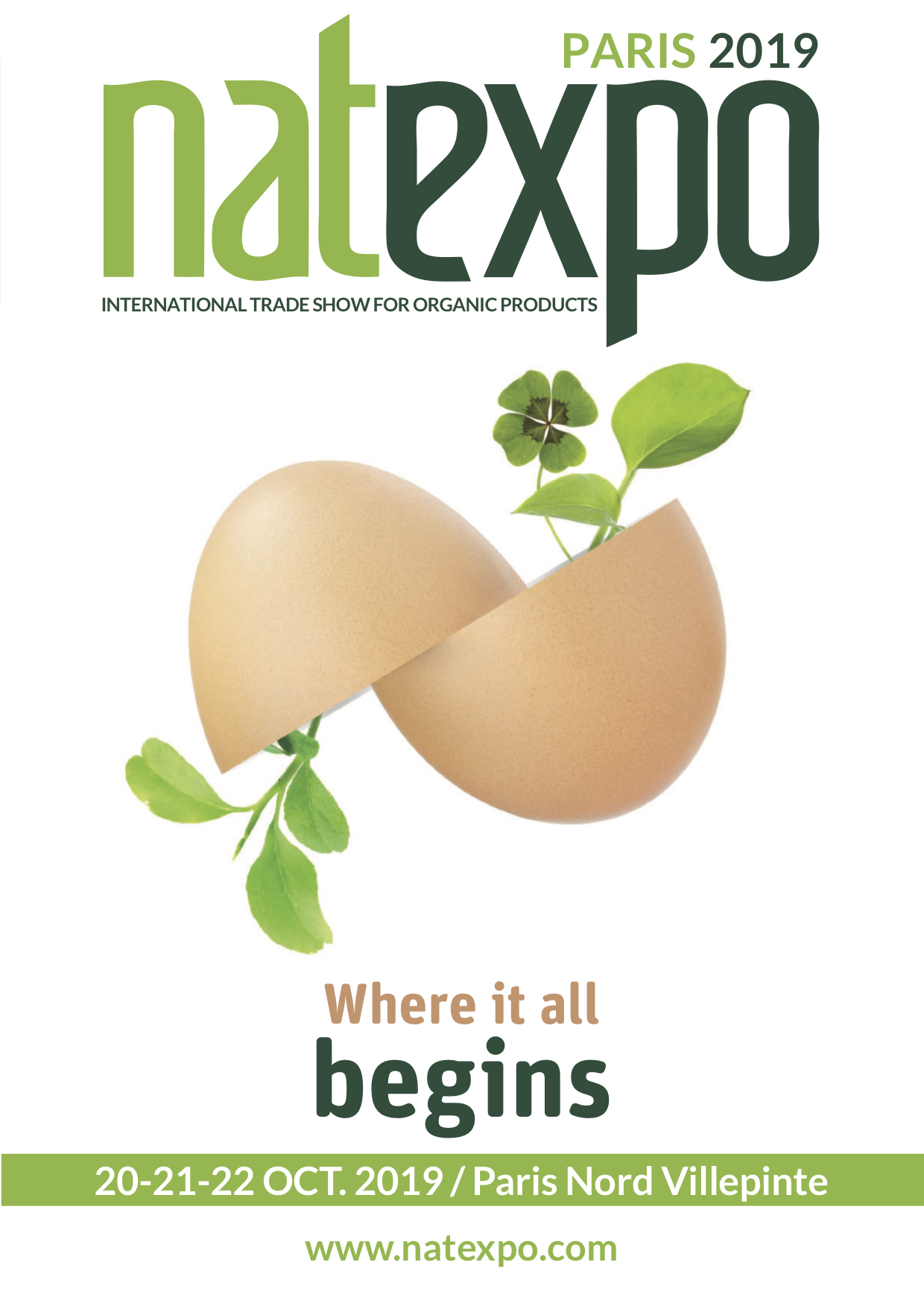 A edição de 2019 da feira internacional de produtos orgânicos Natexpo terá lugar de 20 a 22 de Outubro, em Paris, no Centro de Exposições Paris Nord Villepinte. O evento é organizado pela Natexbio, a federação que representa o sector orgânico em França, e pela SPAS Organisation, empresa de organização de certames.