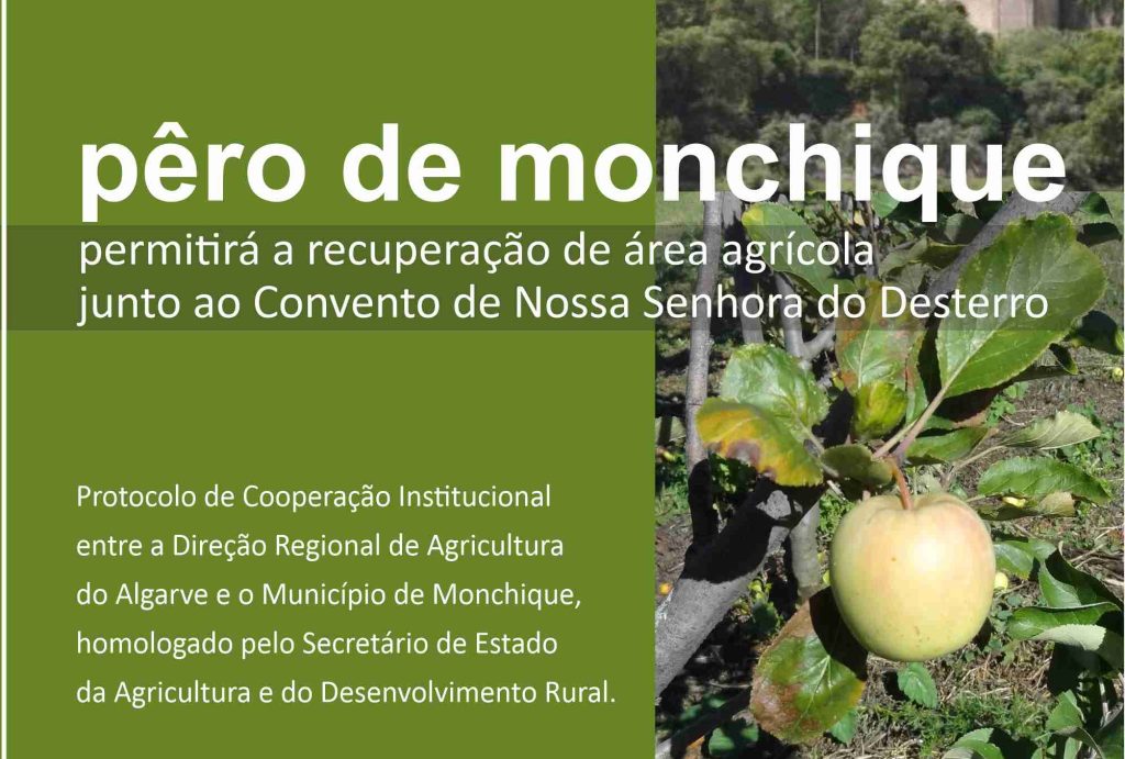 No dia 17 de Fevereiro, pelas 10 horas, será celebrado o Protocolo de Cooperação Institucional entre a Direcção Regional de Agricultura e Pescas do Algarve (DRAP Algarve), e o Município de Monchique, com vista ao desenvolvimento e implementação de um projecto conjunto para a preservação e valorização do Pêro de Monchique como produto tradicional, através da instalação de um Campo de Demonstração e de uma Colecção de pêro de Monchique que conterá uma réplica das diversas variedades existentes na Colecção instalada no Centro de Experimentação Agrária de Tavira (CEAT) da DRAP Algarve.